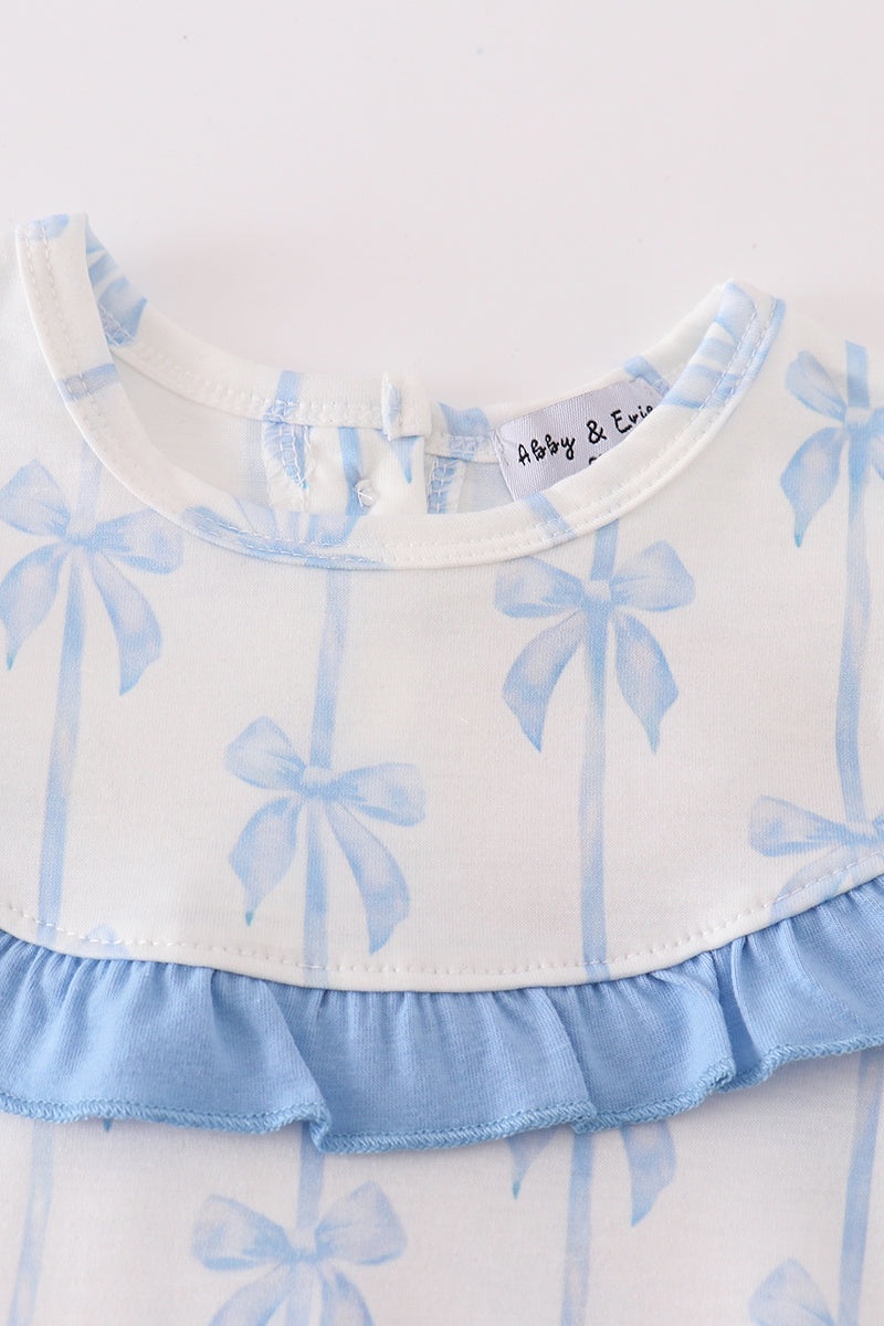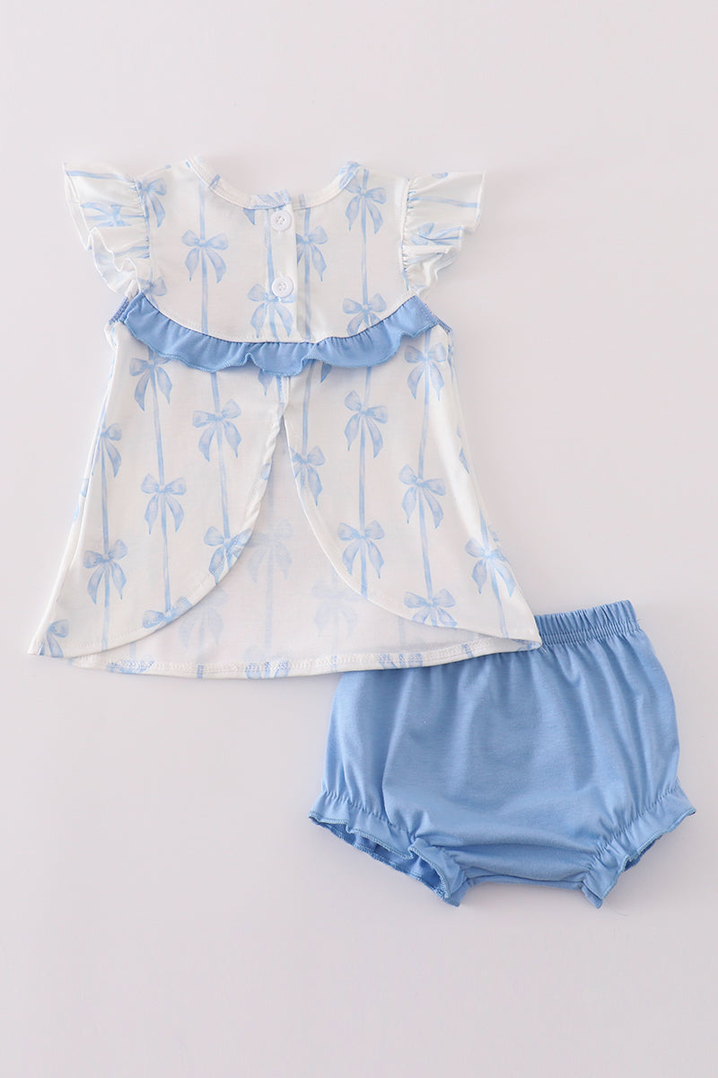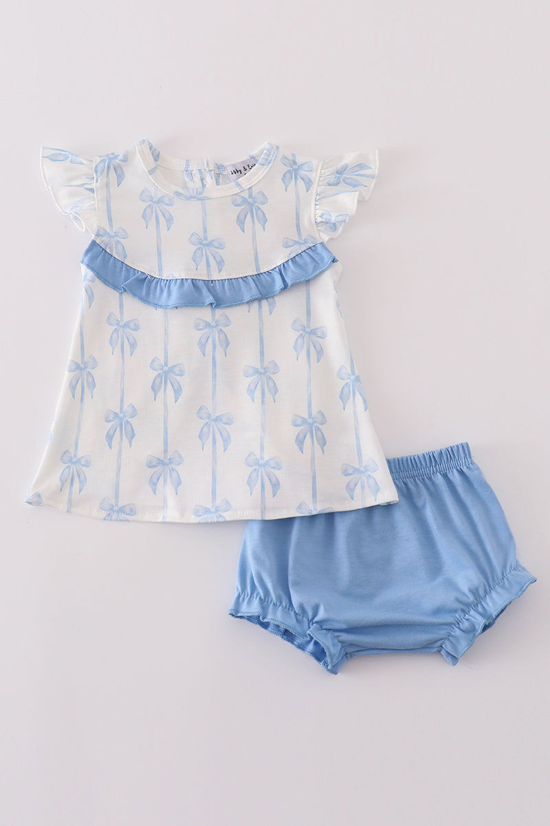 Get ready to turn heads with our Blue Bow Ruffle Girl Bloomer Set! This adorable outfit features a playful ruffled design and a charming blue bow, perfect for any little fashionista. Comfortable and stylish, this set is a must-have for any parent looking to add a touch of fun to their little one's wardrobe!