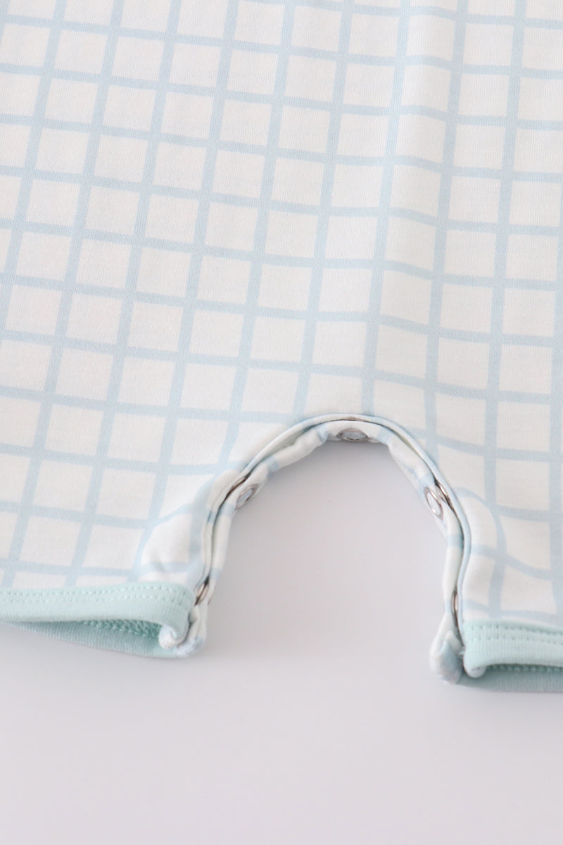 Introducing our Blue Checkered Boy Romper- the perfect outfit for your little man! Made with soft and breathable fabric, this romper features a trendy blue checkered pattern that is both stylish and comfortable. Ideal for any occasion, this romper will have your little one looking sharp and feeling great!