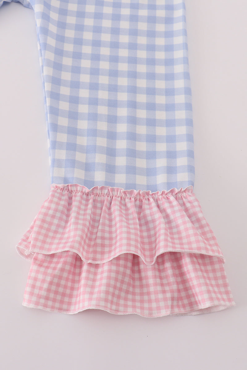 Blue floral pumpkin embroidery ruffle pants set