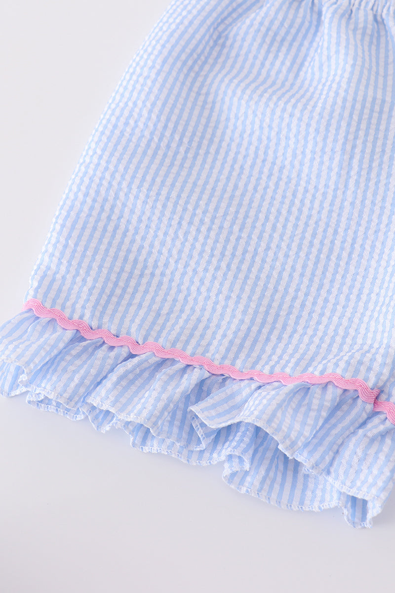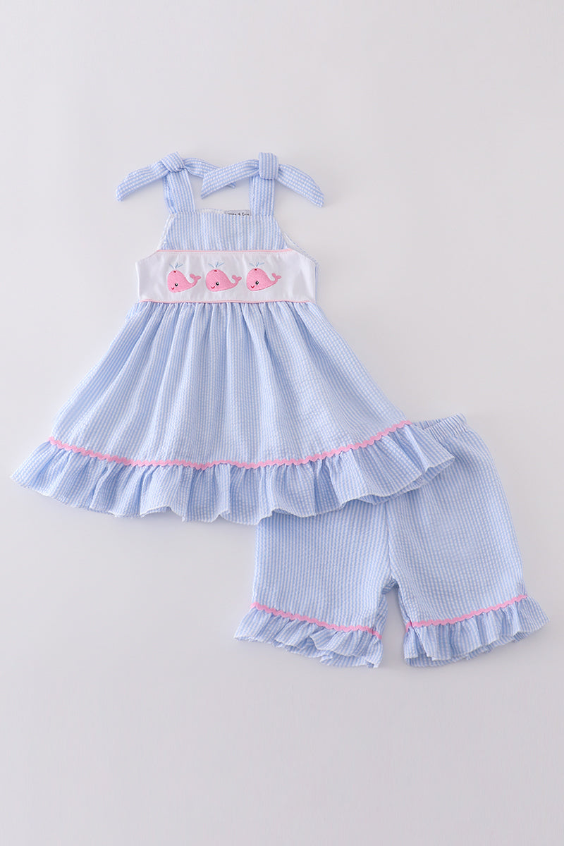 Blue seersucker whale embroidery set