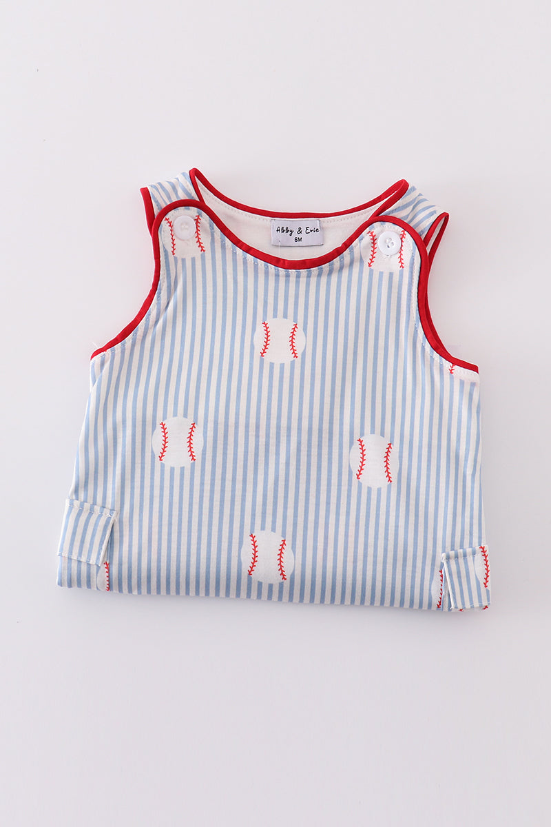 Play ball in style with our Blue Stripe Baseball Jonjon! This playful piece features classic blue stripes and a comfortable fit for your little one to run and play. Perfect for any game day, this jonjon adds a quirky touch to any outfit. Batter up!