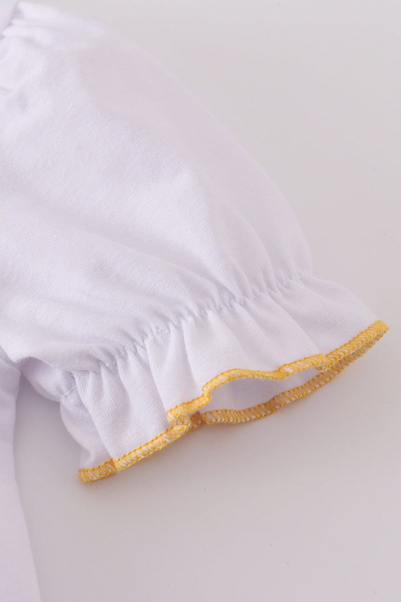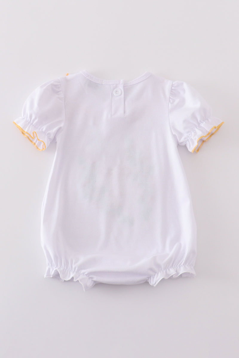 Add some Easter flair to your little one's wardrobe with this adorable cross embroidery girl bubble! Perfect for spring festivities, this bubble is stylish and fun. Let your child hop into the Easter season with this playful and unique addition to their closet. Hoppy Easter!