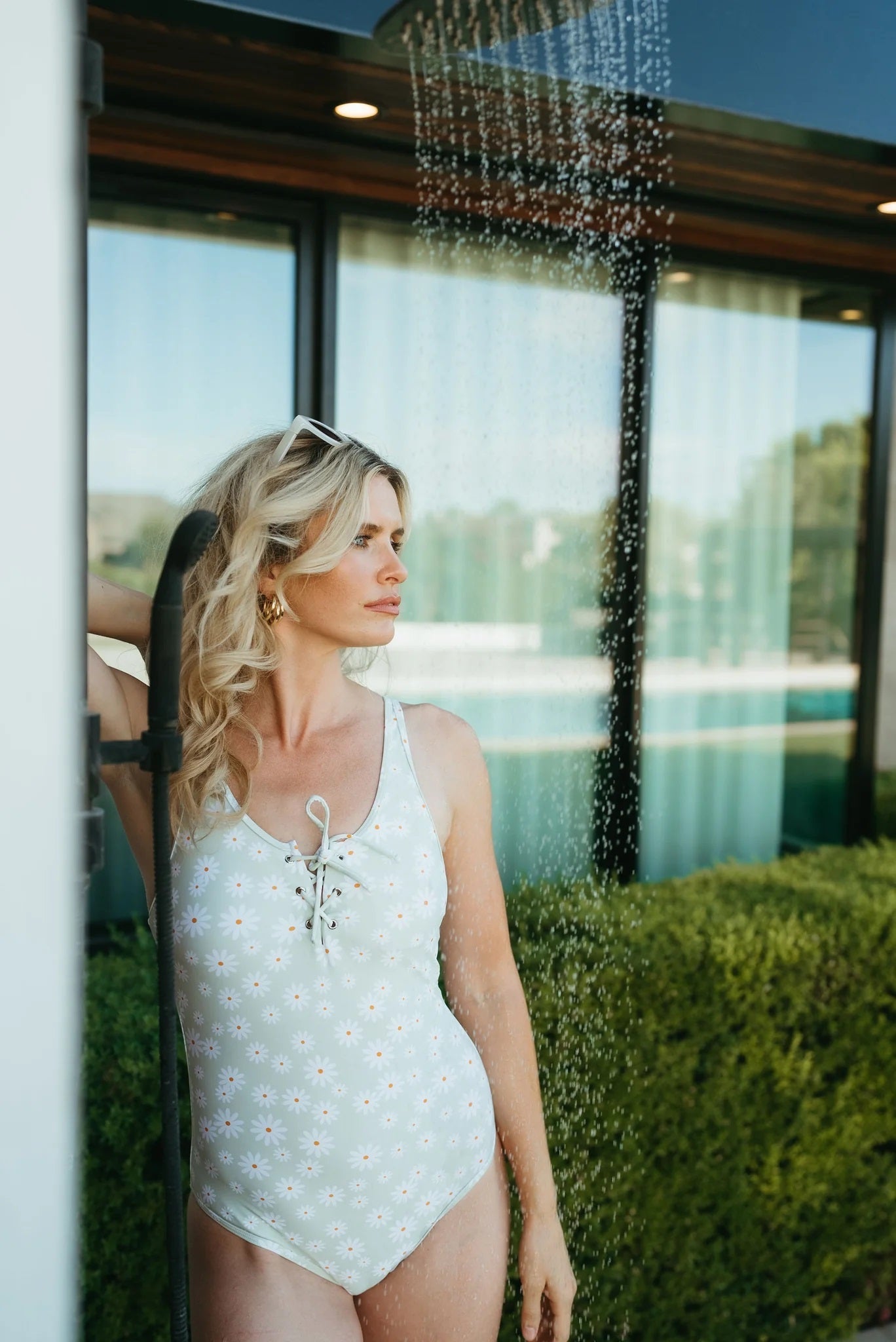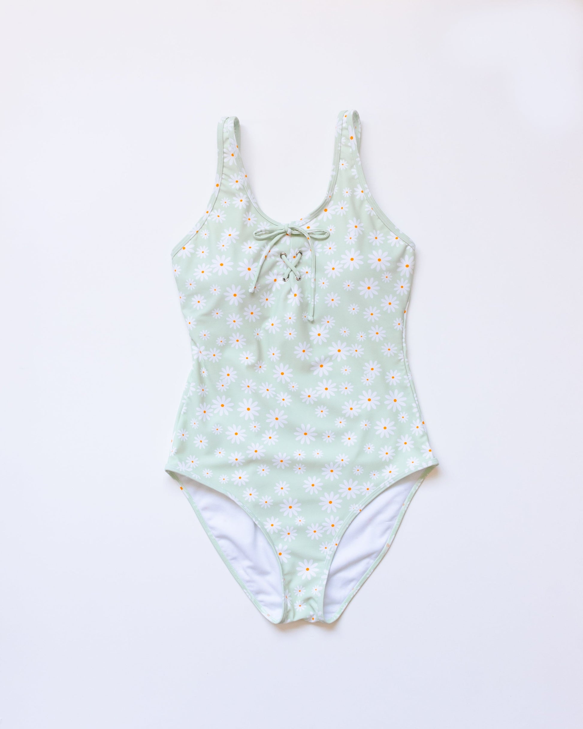 Turn heads at the beach with our Green Daisy Print One Piece Swimsuit! This playful suit features a fun and quirky daisy print, while the one piece design offers comfort and confidence. Stand out in style with this must-have swimsuit!