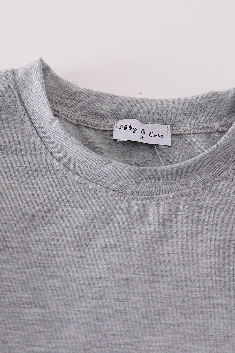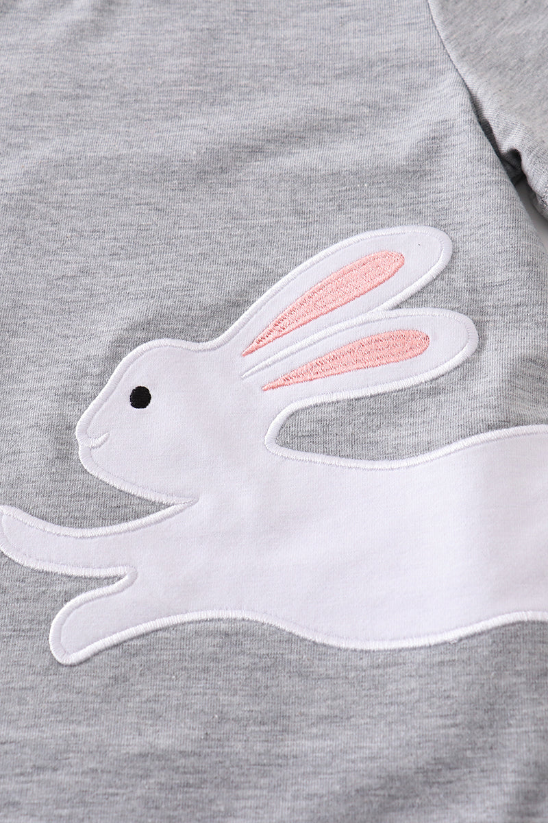 This cute Grey Easter Bunny Boy Set is a hoppy addition to any boy's outfit. With an adorable applique on the front, it's perfect for Easter egg hunts or family photos. Made with comfortable fabric and available in multiple sizes, this set is sure to be a hit with both parents and kids.