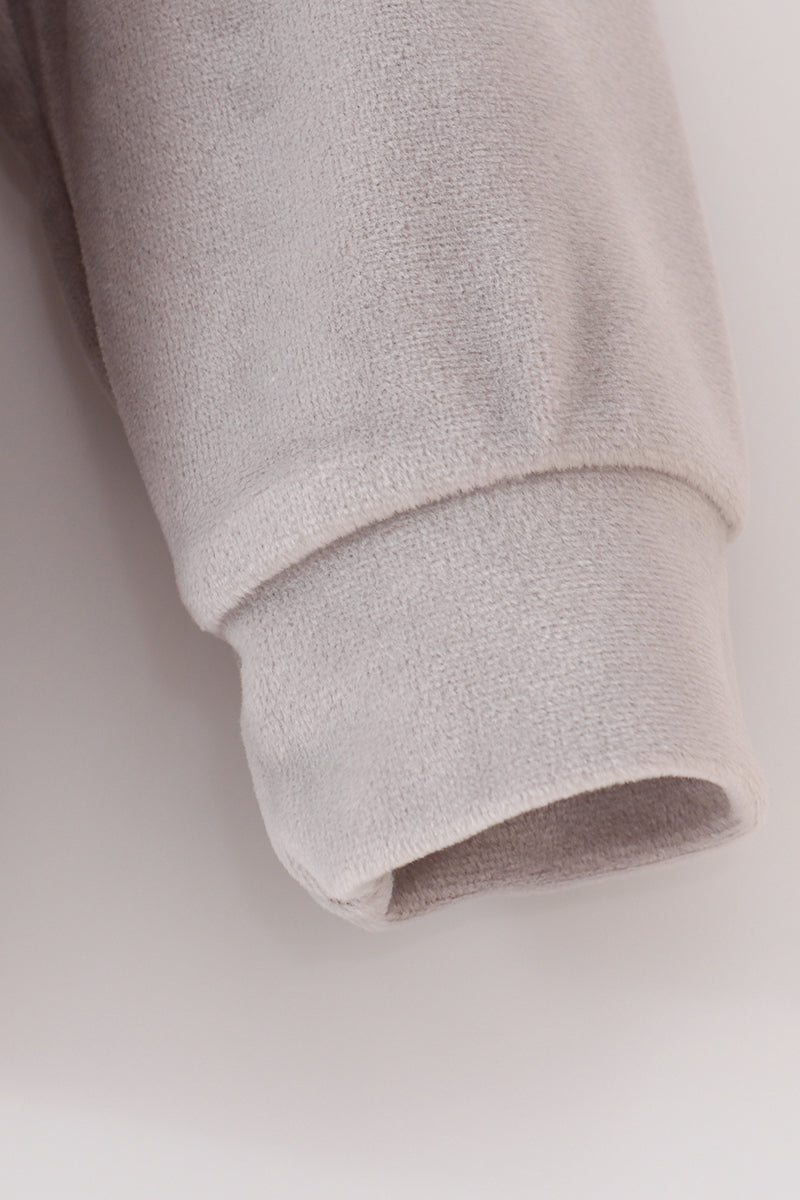 Add some cozy, blessed vibes to your wardrobe with this grey velvet mom&me sweatshirt. Featuring stylish embroidery and a matching set, this unique top is perfect for showing off your playful, quirky side. Bless up!