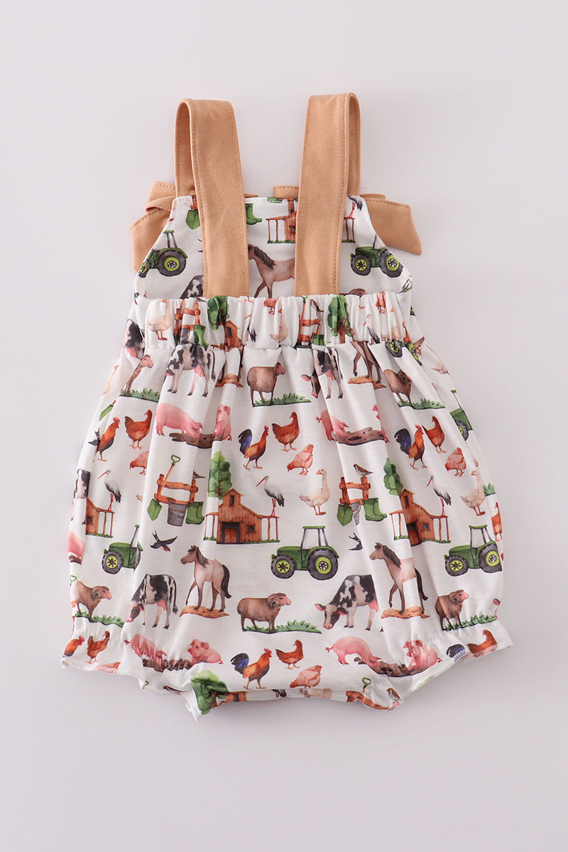 Khaki farm print bow girl bubble