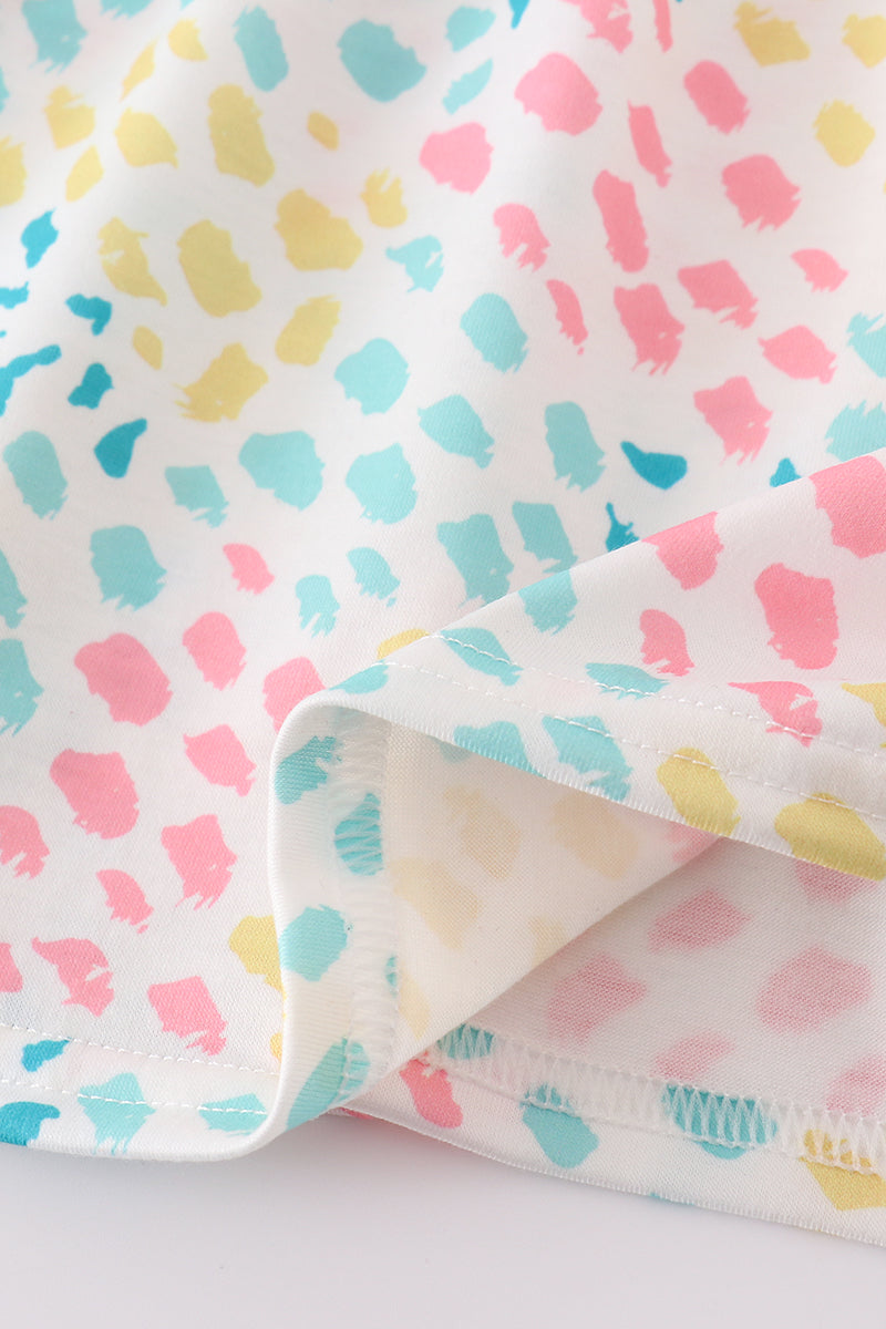 Leopard bunny embroidery girl dress