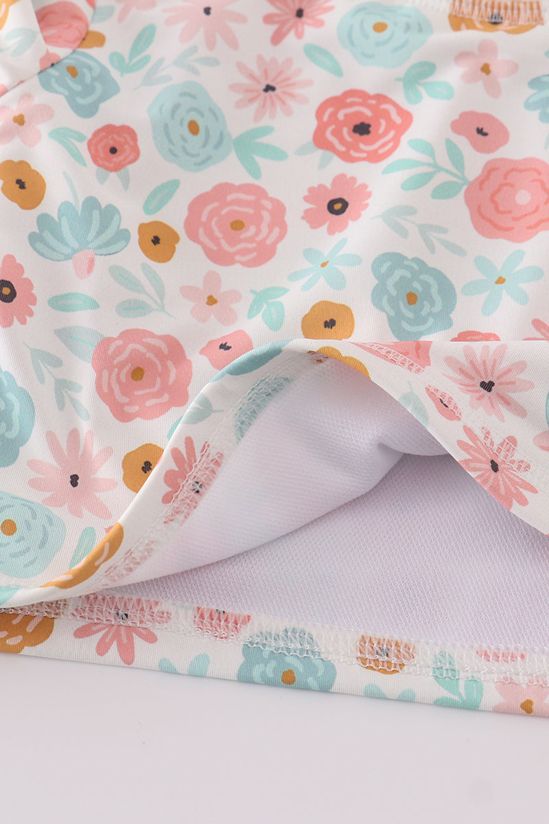 Get ready for a blooming good time with our Minty floral bloom print 2pc girl long sleeve swimsuit! Featuring a playful print and long sleeves for added sun protection, this swimsuit is perfect for a day at the beach or pool. Dive into style with our Minty floral bloom swimsuit!