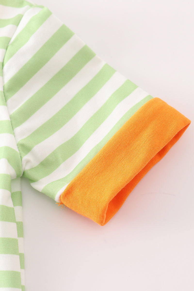 Get your little pumpkin ready for Halloween with our Orange BOO Applique Boy Romper! This playful romper features a bright orange pumpkin design with the word "BOO" appliqued on the front. Perfect for all your Halloween festivities! (No ghosts included!)