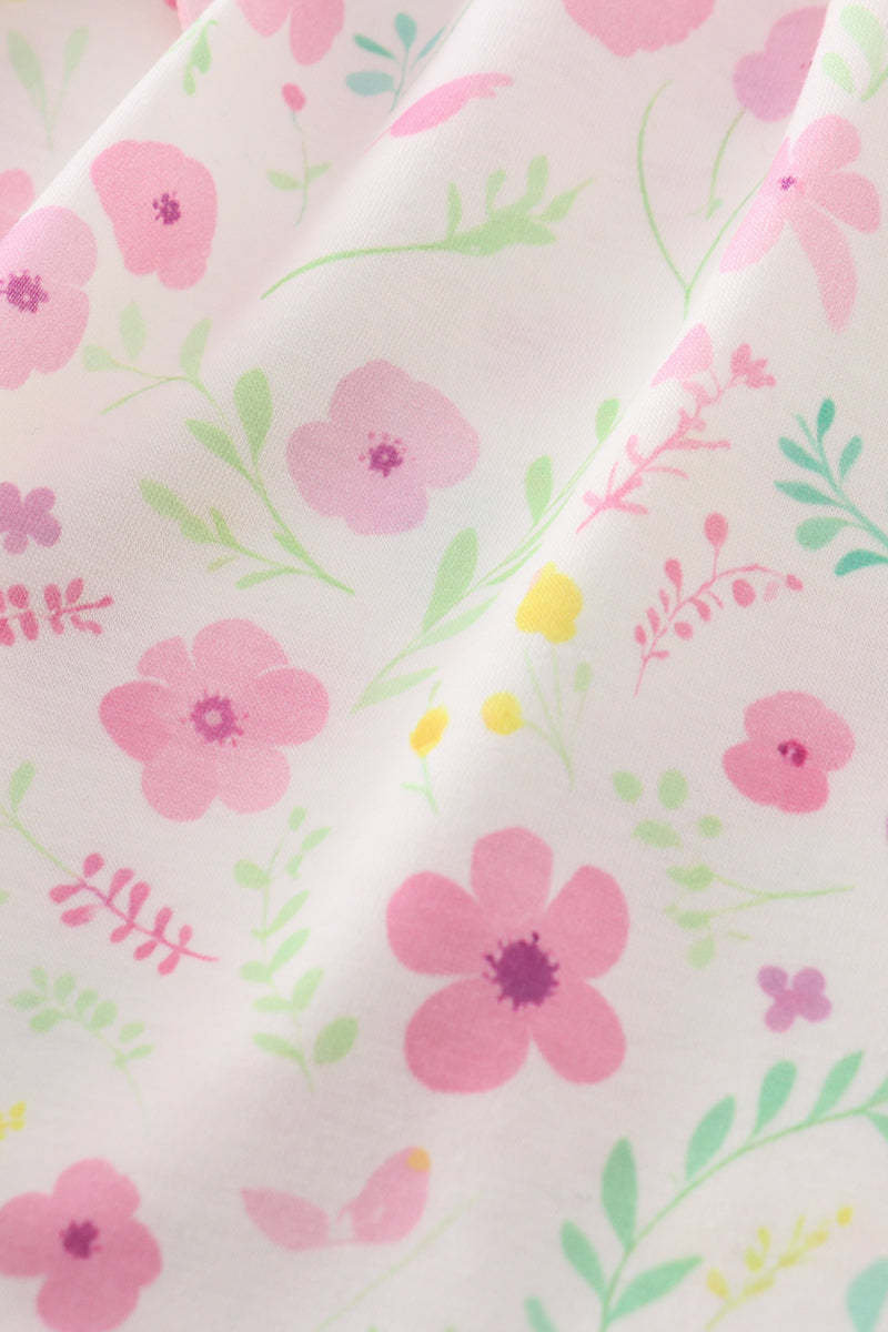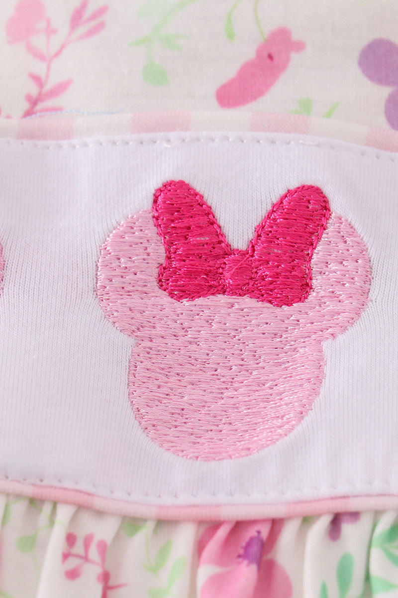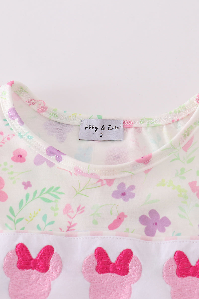 Pink floral mouse embroidery girl set