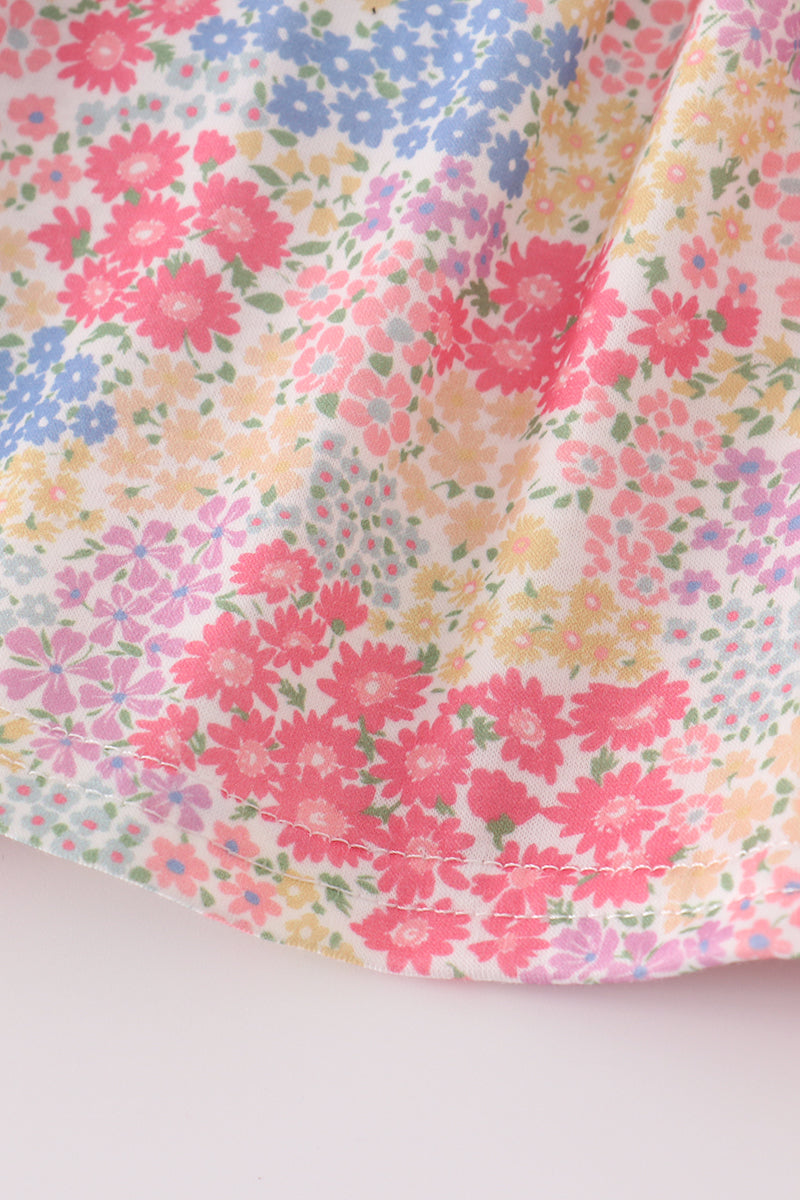 Pink floral pumpkin embroidery ruffle pants set