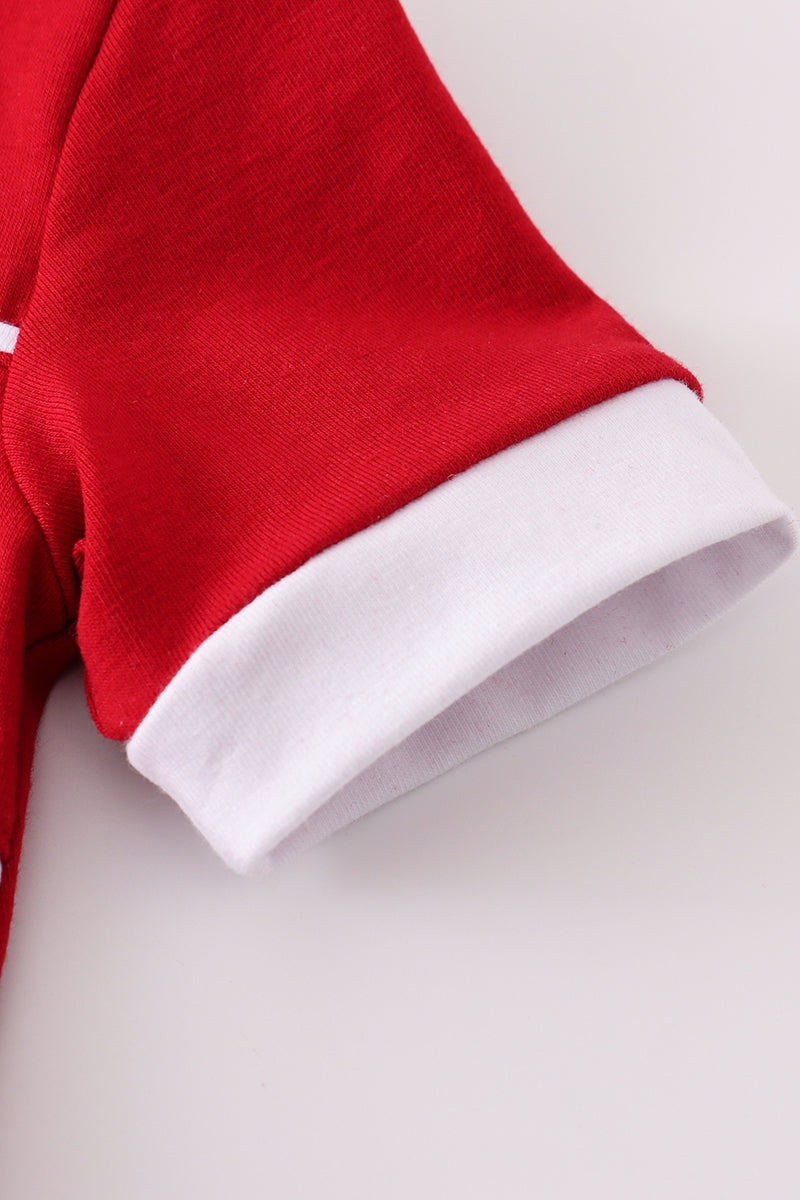 Get ready for game day with our Red Sooners Embroidery Boy Bubble! Featuring a playful design and quirky embroidery, this bubble is the perfect addition to your little one's wardrobe. Show off your team spirit in style! (Go Sooners!)