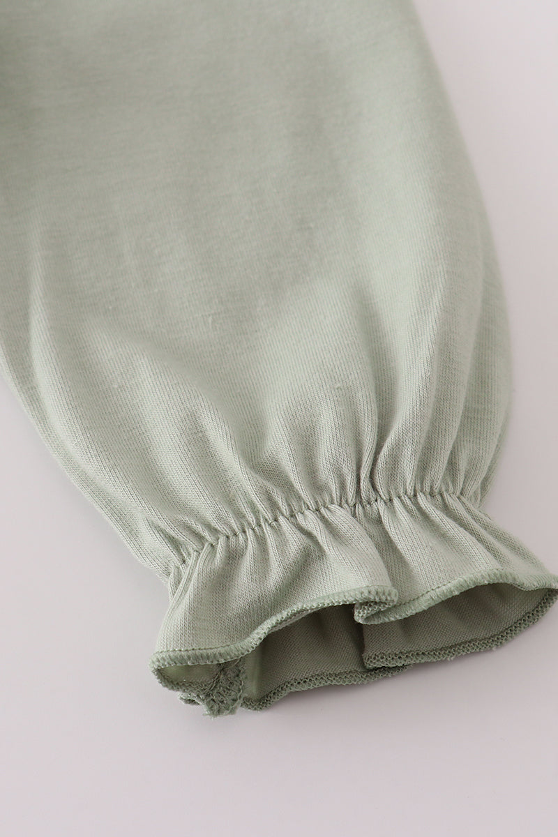 Dress your little one in festive fun with this Sage Camouflage Turkey Applique Bloomer Set. Featuring a charming turkey applique on a soft sage camouflage background, this set combines comfort and cuteness perfectly. Ideal for playful days and holiday gatherings, it adds a touch of whimsy to any outfit while keeping your child cozy and stylish.