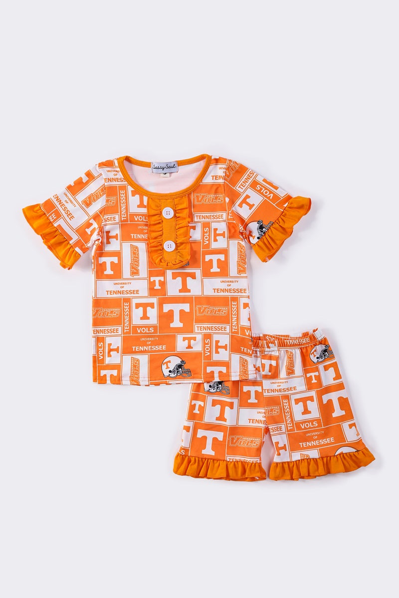 Introducing our Tennessee print girl set – the perfect outfit for your little trendsetter! Made with the softest materials and featuring a bold print of the state, this set is both comfortable and stylish. Let your little one show off their love for Tennessee in this unique and playful ensemble.